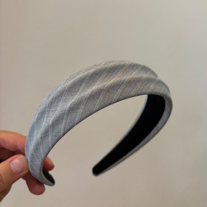 韩版百搭经典条纹宽边发箍高级凹凸感灰色高颅顶发饰发卡头箍新款