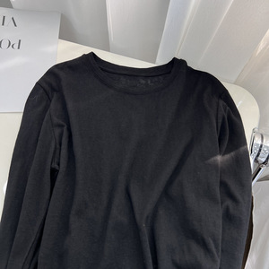 竹节棉白色长袖t恤女薄款春秋季简约纯色宽松圆领上衣百搭打底衫
