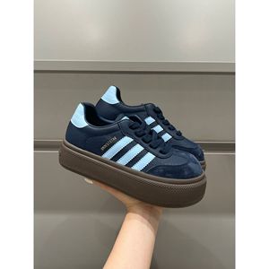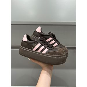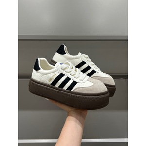 芭慕秀2025秋季新款磨砂真皮厚底增高三条杠休闲运动阿甘德训鞋女