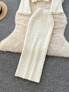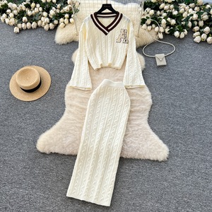 慵懒风毛衣两件套女秋季chic时尚字母刺绣长袖针织上衣紧身半身裙