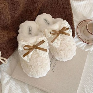 冬季棉拖鞋女款学生版蝴蝶结厚底防滑保暖居家休闲百搭棉拖鞋女士