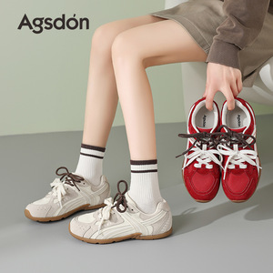 奥古狮登红色德训鞋女款2025新款夏季软底赛车鞋运动芭蕾阿甘女鞋