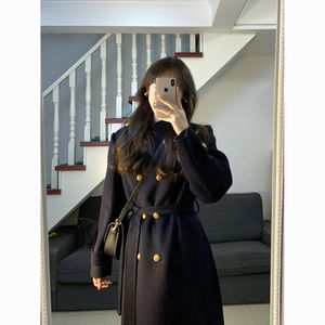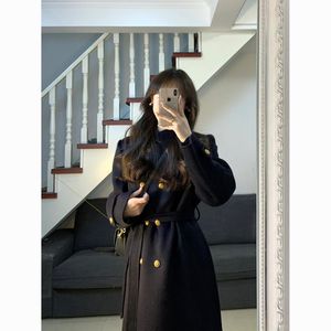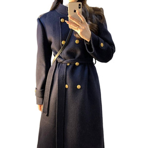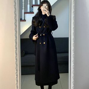 2025秋冬赫本风韩版立领毛呢大衣中长款宽松双排扣系带毛呢外套女