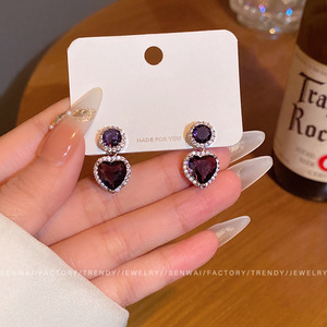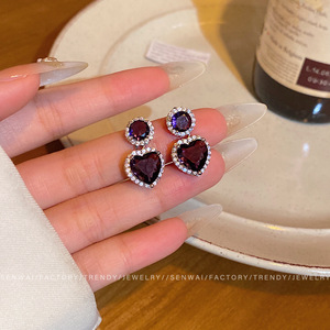 紫色爱心微镶锆石耳环女精致轻奢高级感气质耳钉个性时尚百搭耳饰