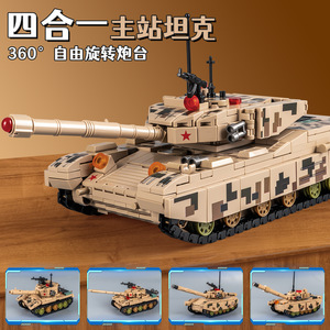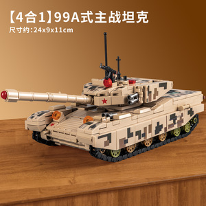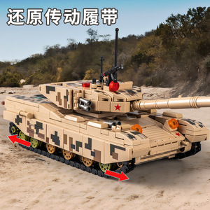 儿童积木军事系列99式主战坦克模型火箭炮男孩拼装玩具积木批发