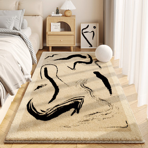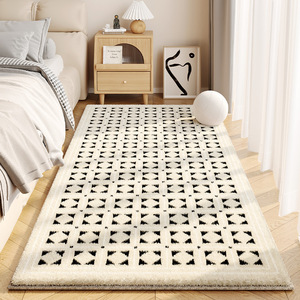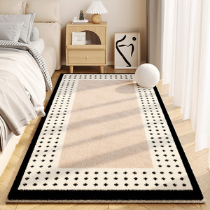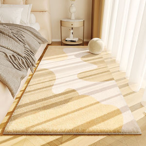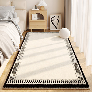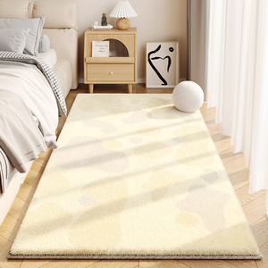 奶油风仿羊绒地毯卧室长条床边毯耐脏易打理加厚防滑家用地毯天津