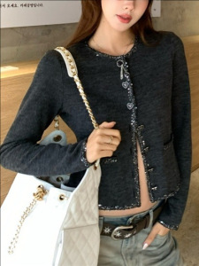 Ranwer Paris千金 法式温柔气质小香设计感亮片织带针织毛衣开衫