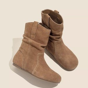 牛皮版~内增高复古短靴女2025秋冬西部马丁靴圆头短筒勃肯堆堆靴