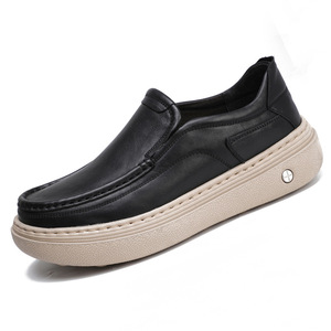 头层牛皮男士休闲鞋宽版套脚轻底男鞋增高厚底轻便上线舒适男鞋子