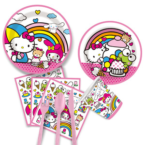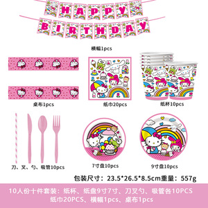 KT猫主题卡通儿童生日派对用品一次性桌布横幅纸盘纸巾杯餐具套装