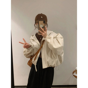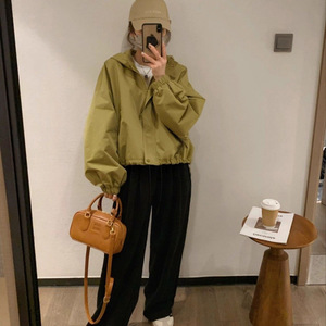 爆款连帽夹克春季新款韩版百搭休闲风衣短款小个子宽松短外套