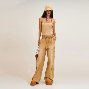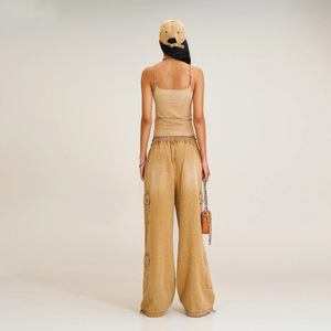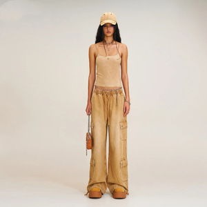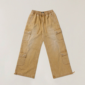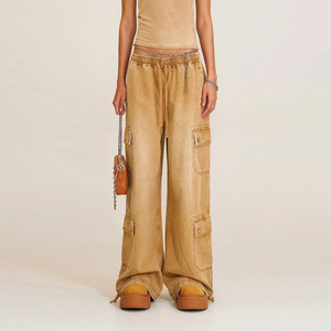 SMFK十字雕像高塔牛仔运动裤复古丹宁宽松抽绳工装休闲裤