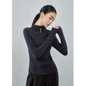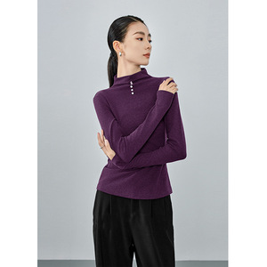 半高领长袖修身显瘦纯色T桖女2025秋季基础款气质通勤外搭打底衫