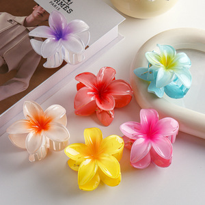 跨境彩色鸡蛋花发夹花朵抓夹复古女士侧抓半抓后脑勺鲨鱼夹头饰