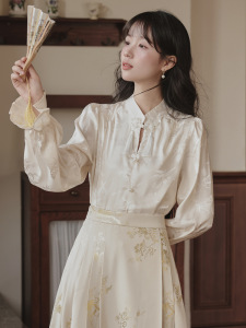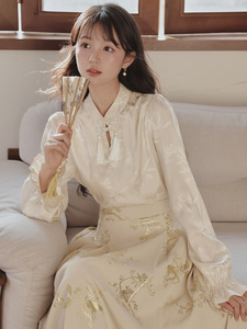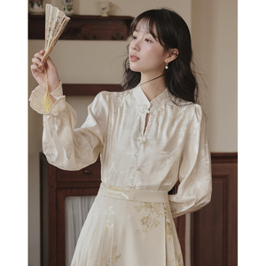 新中式国风套马面裙套装女高端盘扣衬衫半身裙大方得体穿搭两件套