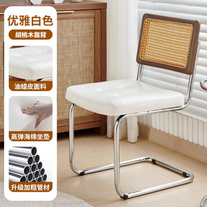 【胡桃木实木靠背】白色-油蜡坐垫