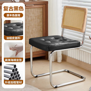 中古餐椅实木藤编椅子家用扶手靠背凳子原木风复古休闲瓦西里餐椅