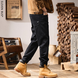 新款高端轻奢弹力黑色牛仔裤男款美式潮牌复古宽松休闲锥形牛仔裤
