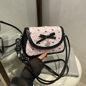 时尚花边高级感小众单肩包女新款甜美个性印花休闲百搭斜挎包