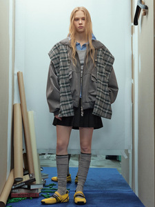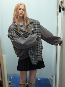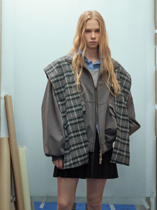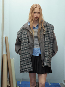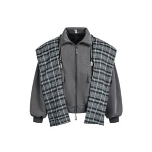 2025秋季新款美式复古可拆卸帽格子纯色翻领短款夹克男女宽松外套