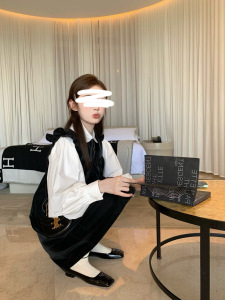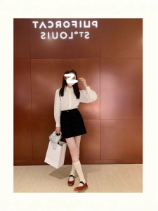 白色韩国chic气质百搭翻领宽松褶皱泡泡袖衬衫女春秋韩版G1462