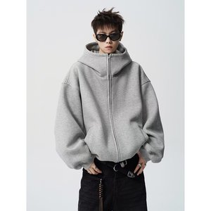 美式重磅开衫连帽卫衣男秋冬新款高街宽松潮牌高级感休闲百搭外套