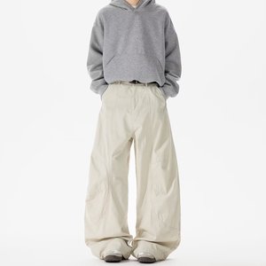 美式复古废土风弯刀裤男款秋季拼接工装裤潮牌高腰阔腿长裤子