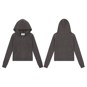美式复古铆钉辣妹街头修身短款拉链连帽卫衣外套2025秋季