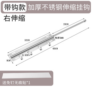 不锈钢壁挂拉杆[带4钩]右拉款(打孔+免打孔)