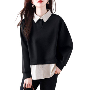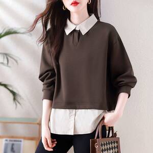 假两件拼接长袖衬衫女2025春秋季新款时尚百搭洋气卫衣打底衫上衣
