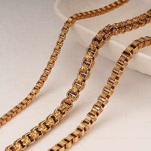 纹路真空电镀金色钢色不锈钢方珍珠链简约毛衣项链嘻哈风同款