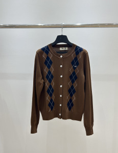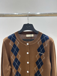 2025早秋复古撞色菱格羊毛针织开衫女高级感美拉德圆领毛衣外套女