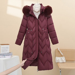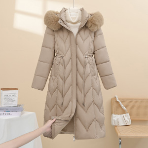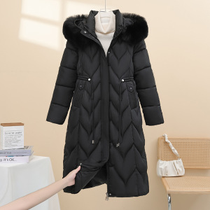 5XL大码毛领新款棉衣棉服女中长款韩版加厚过膝棉衣纯色棉袄外套