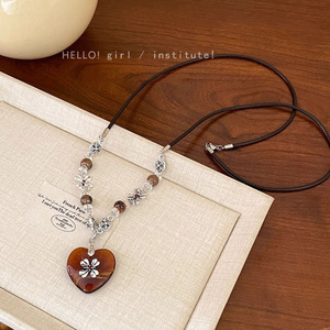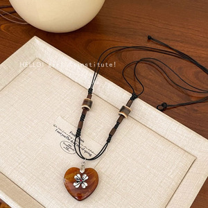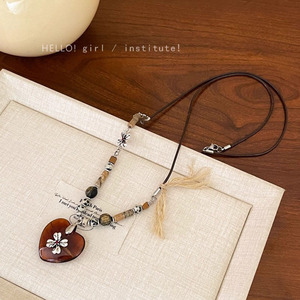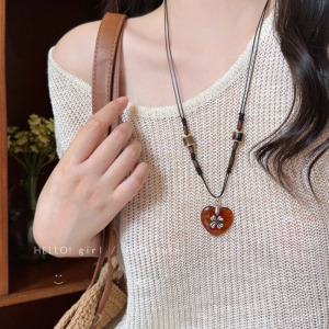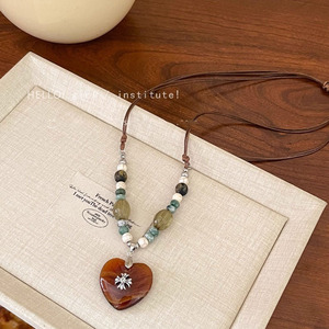 复古民族风串珠爱心吊坠项链女小众设计感长款毛衣链新中式配饰品
