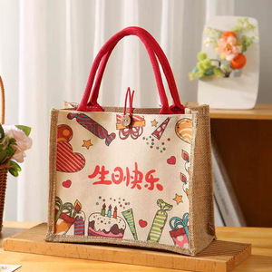 麻布伴手礼袋宝宝满月礼品袋生日宴会实用环保手提袋麻布袋子