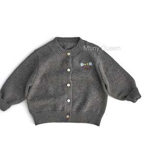 彩点全棉~ch美日杂色~儿童毛衣韩版宽松外套绣花针织毛衣开衫森