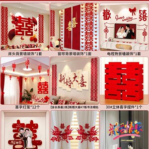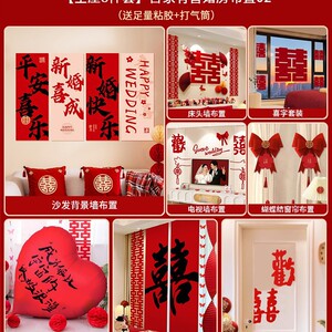 婚房布置套装结婚装饰女方卧室床头喜字拉花男方主卧婚礼用品大全