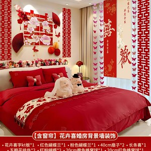 【含双喜窗帘】花卉喜婚房背景墙装饰