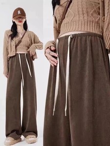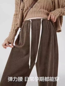 孕妇裤子秋季外穿修身显瘦不勒肚子运动阔腿裤抽绳直筒孕妇休闲裤