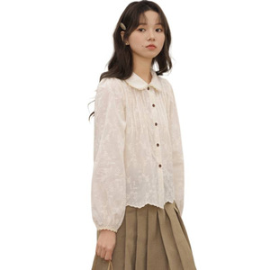 文艺复古不规则下摆设计感衬衫上衣女长袖娃娃领宽松百搭刺绣衬衣