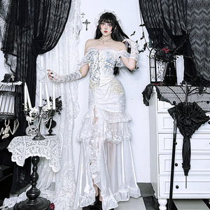 XS25212暗黑系法式宫廷华丽刺绣半裙 2025新款哥特风高开叉半身裙