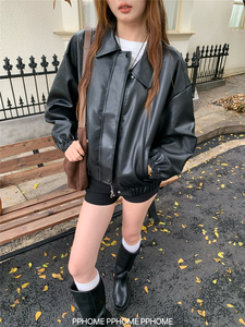 2025年~美式女孩 复古皮衣夹克外套女秋冬PU皮宽松长袖上衣百搭款