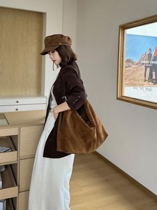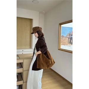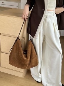慵懒松弛感磨砂牛皮托特包女复古通勤单肩大包大容量麂皮绒斜挎包