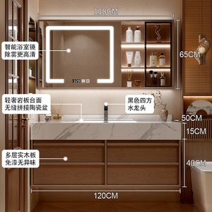120CM岩板无缝陶瓷盆+智能收纳镜柜