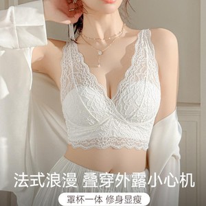 法式蕾丝内衣女小胸聚拢上托舒适显大吊带背心可外穿薄款美背胸罩