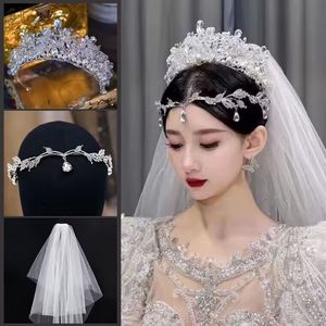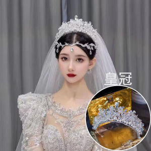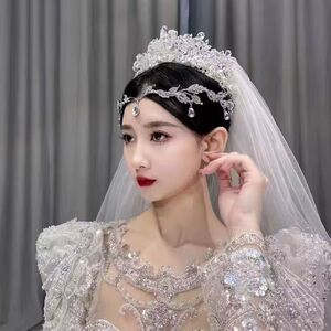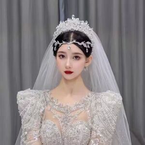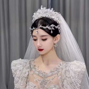 新娘皇冠头饰高级感轻奢简约大气成人公主生日珍珠女神三件套王冠