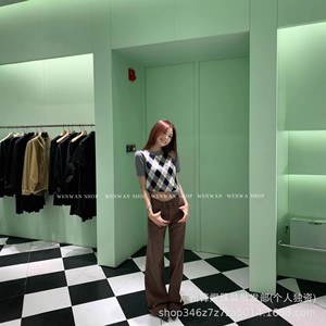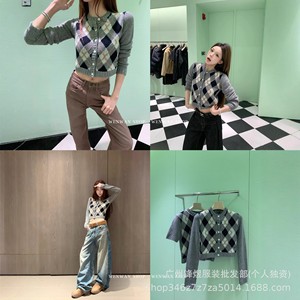南油高定P家【PRA主角登场】学院风菱格纹圆领长袖秋冬毛衣针织衫