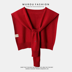 安哥拉红色羊毛披肩女春夏外搭配裙子2025新款空调房针织小坎肩薄