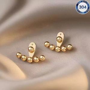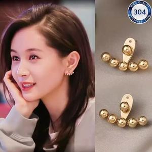 王子文同款304网红钢珠耳钉小众时尚个性简约18K镀金耳环女耳饰品