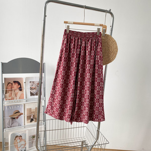 日系棉麻风格子廓形棉麻风裙裤秋冬季新款磨毛显瘦遮肉棋盘格裙裤